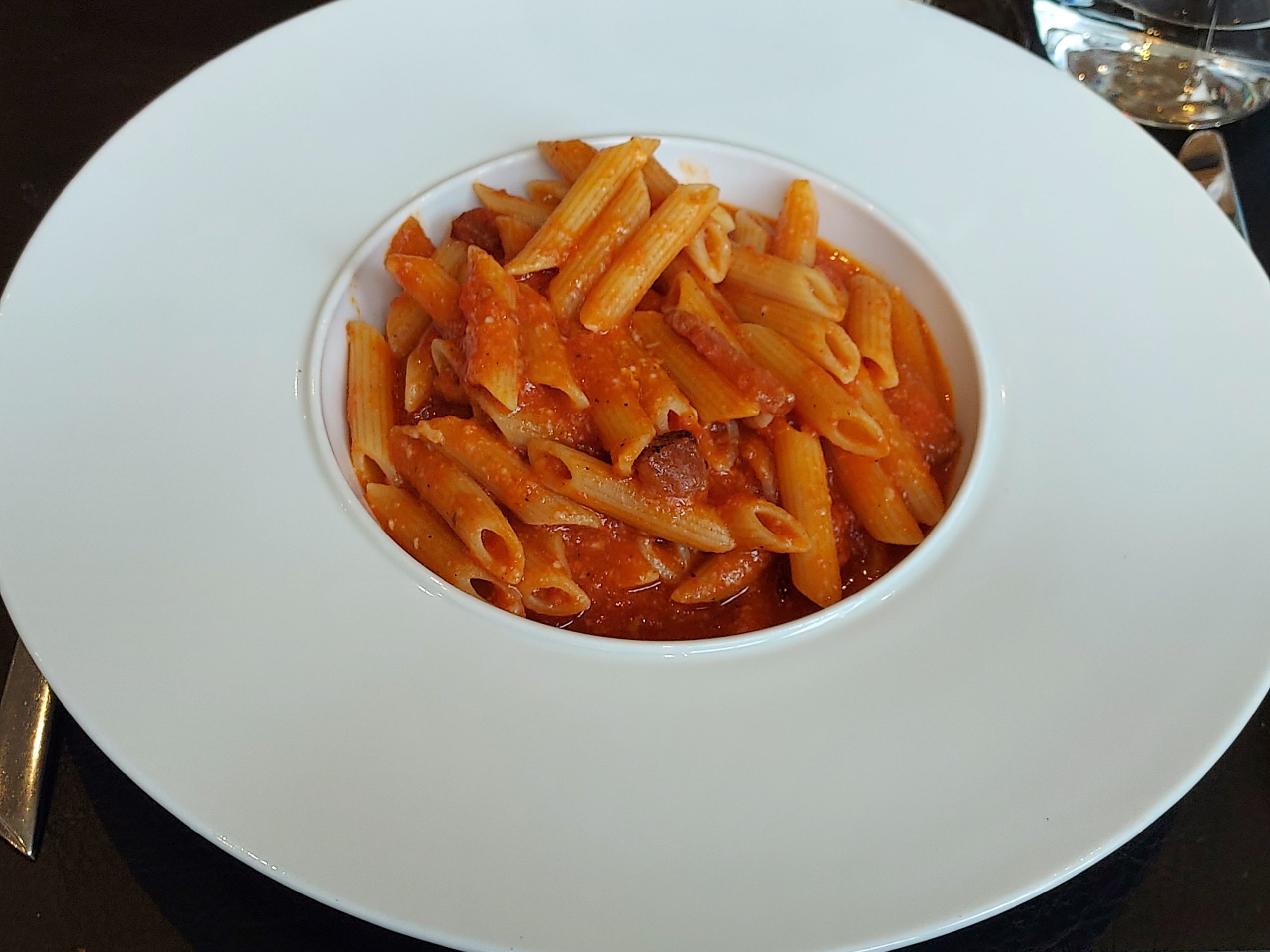 Le restaurant Armonia de Baden propose les plats classiques de la cuisine italienne : pâtes, risotto, pizzas et autres. A midi durant la semaine, un menu propose cinq plats. Lors de mes deux passages, j’ai d’abord goûté à une assiette de penne généreusement garnie. La sauce tomate était bonne et le guanciale savoureux.