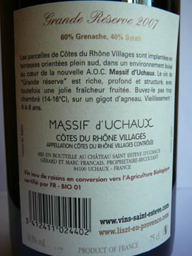 Commentaires : Une robe sombre et un nez agréablement fruité qui se manifeste avant d’agiter le vin. En bouche on sent encore un peu de boisé mais ensuite celui-ci laisse place à des arômes de mûres et de cassis avec des senteurs d’épices en fin de bouche.